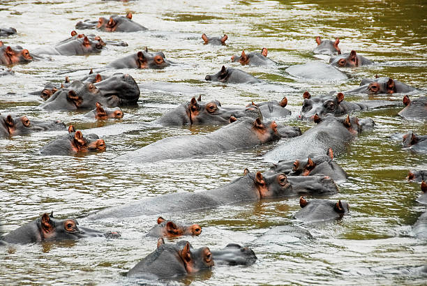 The incredible feat was captured on camera as they swam across the Kazinga Channel in Queen Elizabeth National Park in the Western part of Uganda within East Africa.